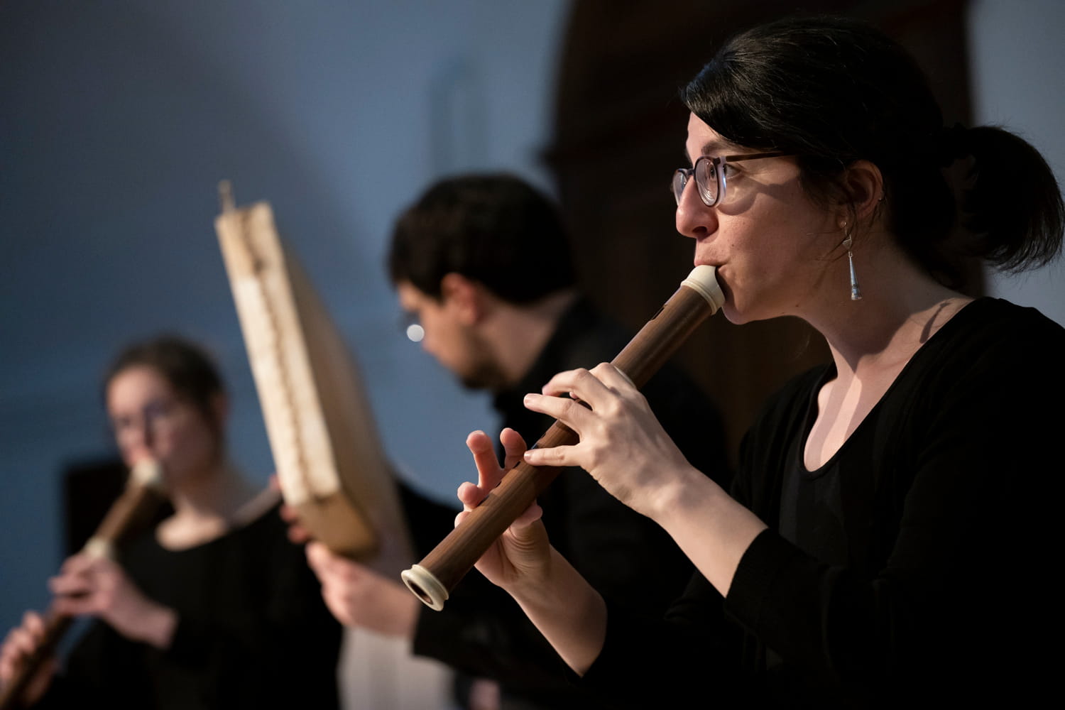 Musicienne et pédagogue engagée, Anabelle Guibeaud pratique les flûtes à bec et les hautbois anciens, et s’intéresse au jeu des instruments à vent historiques en général.